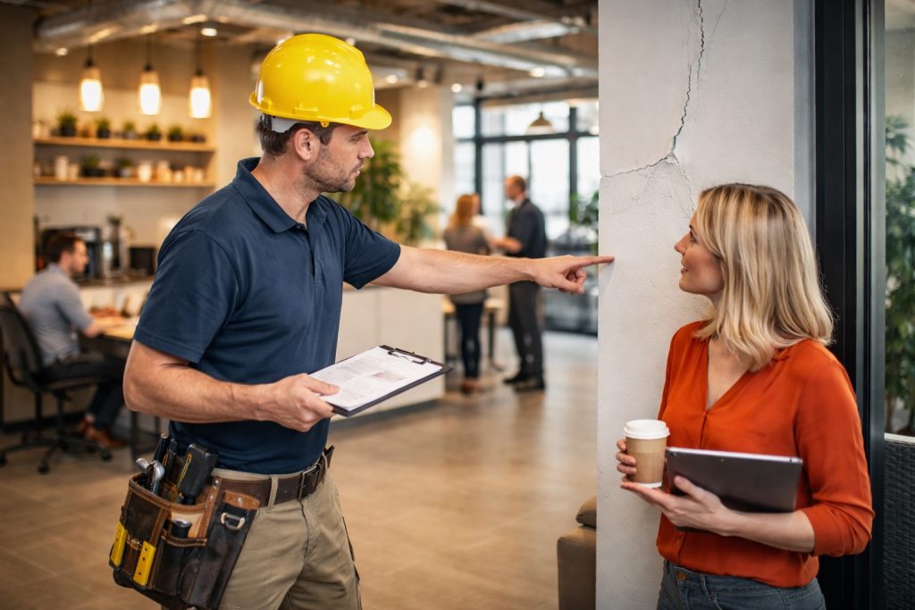 - Escalate: Set thresholds for when an issue gets a facilities review (e.g., a crack that grows, repeated water intrusion, or a door that won’t align twice in a month).